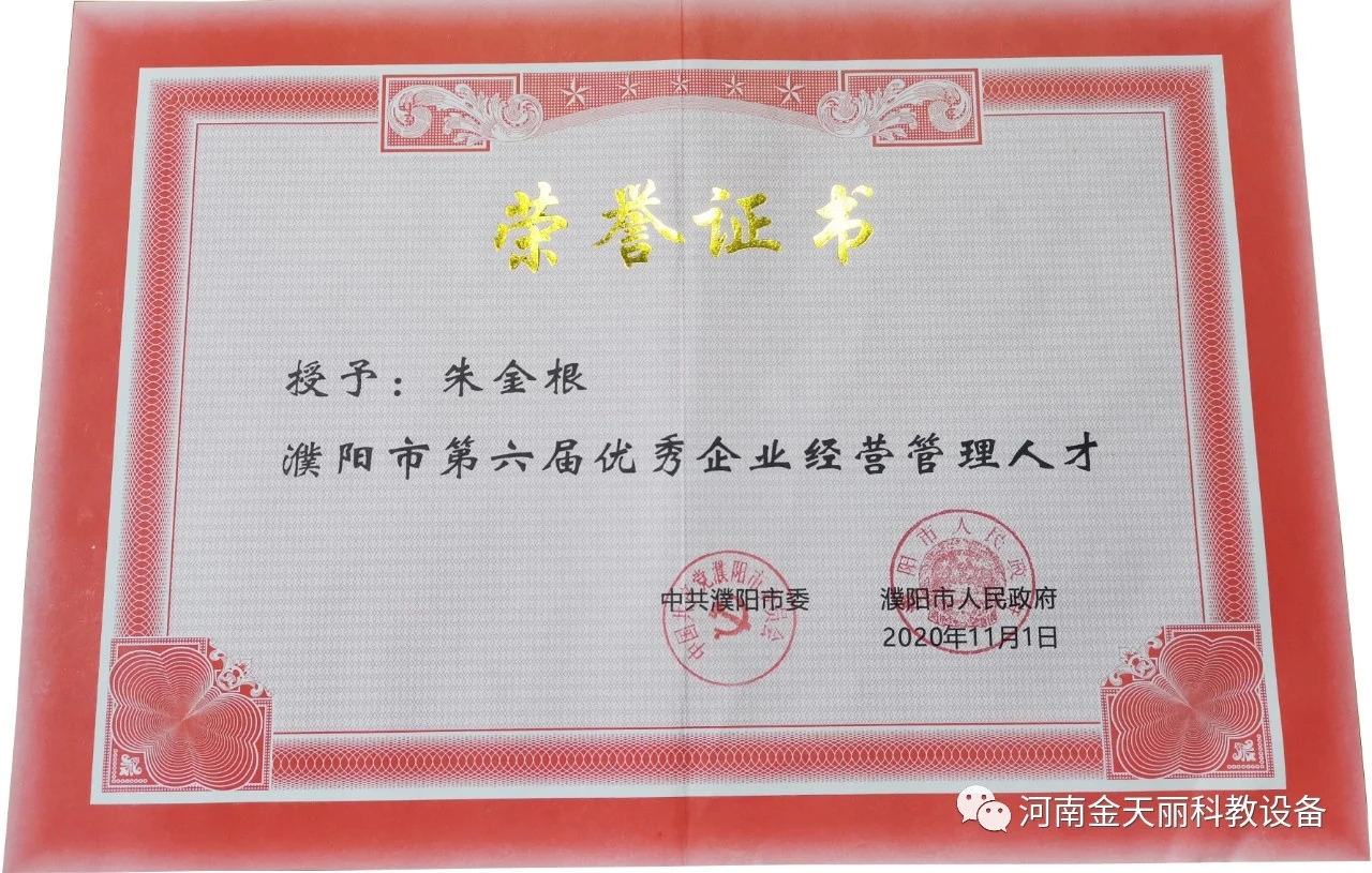 2020年總經理朱金根榮獲濮陽市第六屆優秀企業經營管理人才